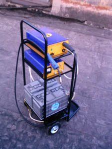 Конструктивно установка состоят из установленных на передвижную тележку, двух стартерных аккумуляторных батарей, соединенных последовательно и механизма подачи сварочной проволоки типа ПДГ-257. Для зарядки аккумуляторных батарей установка комплектуется зарядным устройством. На тележке имеется площадка для установки баллона с защитным газом. В качестве сварочных материалов применяются, сварочная проволока соответствующего химического состава, намотанная на катушку и защитные газы (углекислота, аргон, гелий или их смеси).